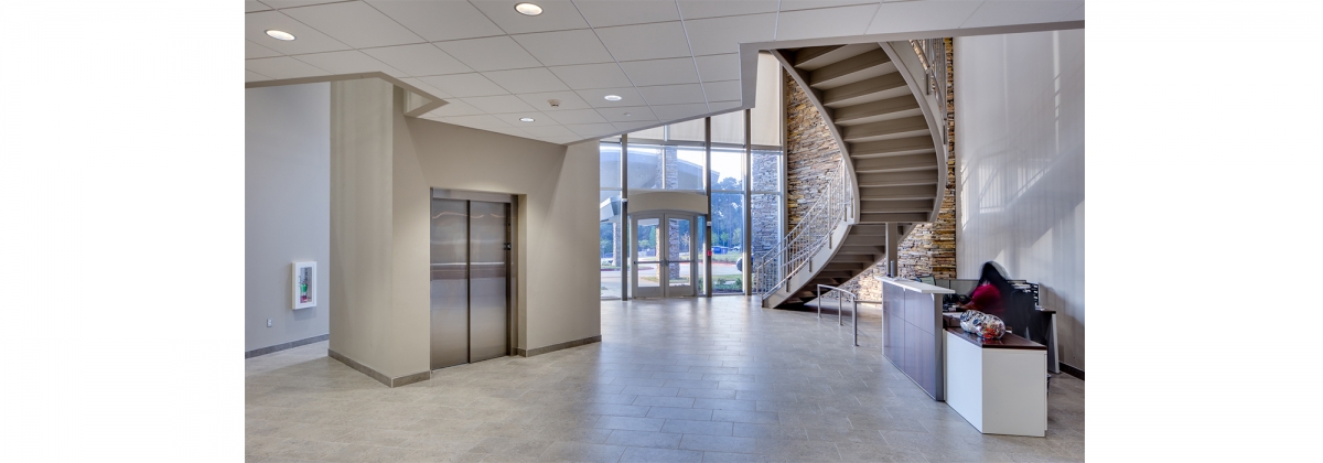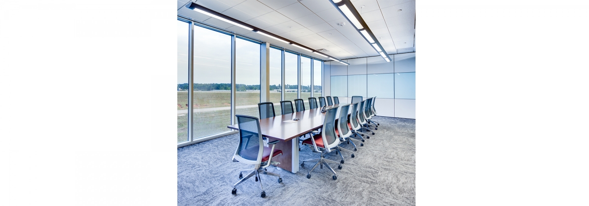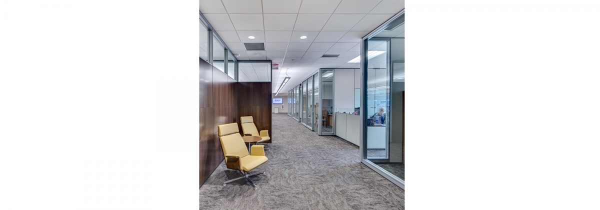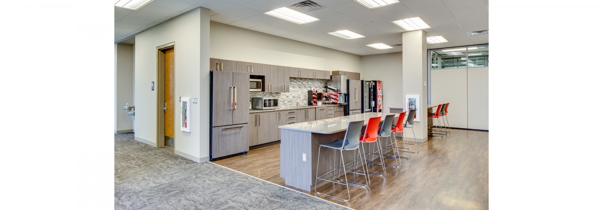 After two decades of leasing multiple floors in a downtown high-rise, the leadership of this growing nationwide freight logistics company decided to bring all of their 100+ employees together to encourage teamwork and boost efficiency. As an avid outdoorsman, the owner requested a natural exterior aesthetic that would reflect the style of his adopted home in the Rocky Mountains while remaining timeless on its own. The SGB team created a simple plan with a utilitarian core winged by open workspaces and executive offices lining the curtainwall perimeter. Modern furniture systems were employed in place of fixed walls to accommodate a collaborative, flexible workspace while allowing for future growth.