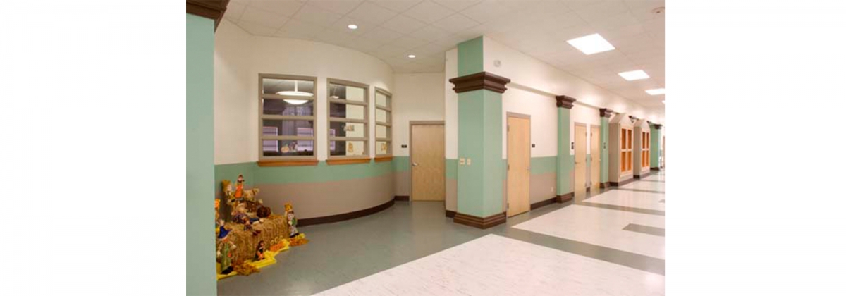 This project was commissioned to create a central connecting element between two 1920’s classroom buildings that would collate the schools scattered administrative and media functions into one space. SGB sought to design a structure that would easily identify as the primary entry to the campus while being in harmony with the existing historic architecture. The new building connects the existing classrooms and gymnasium and includes administrative offices, media centers, computer labs, and an entry canopy for secure student entry.