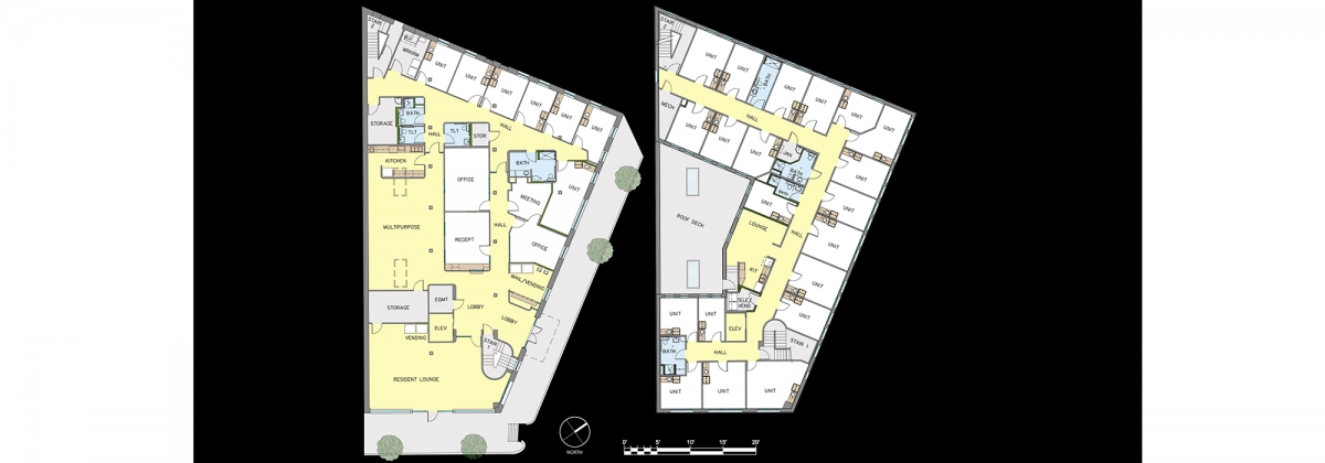 Originally the Yorke Hotel, built circa 1910, this 3-story load bearing masonry structure is located in the St. Paul’s Historic District of Shreveport. SGB Architects collaborated with the Louisiana Department of Historic Preservation to establish a work scope accepted by the National Standards for Rehabilitation. The intricate brick detailing, with pronounced brick corbelling at the parapet top and arched openings, was carefully re-anchored, repointed, and hand cleaned. Interior preservation efforts targeted the original wood trim of the door frames and transoms, along with the existing plaster of the exterior masonry walls. This revitalization plan maintains the existing 45 dwelling units while adding new bathroom facilities, accessibility compliance, and common lounge.